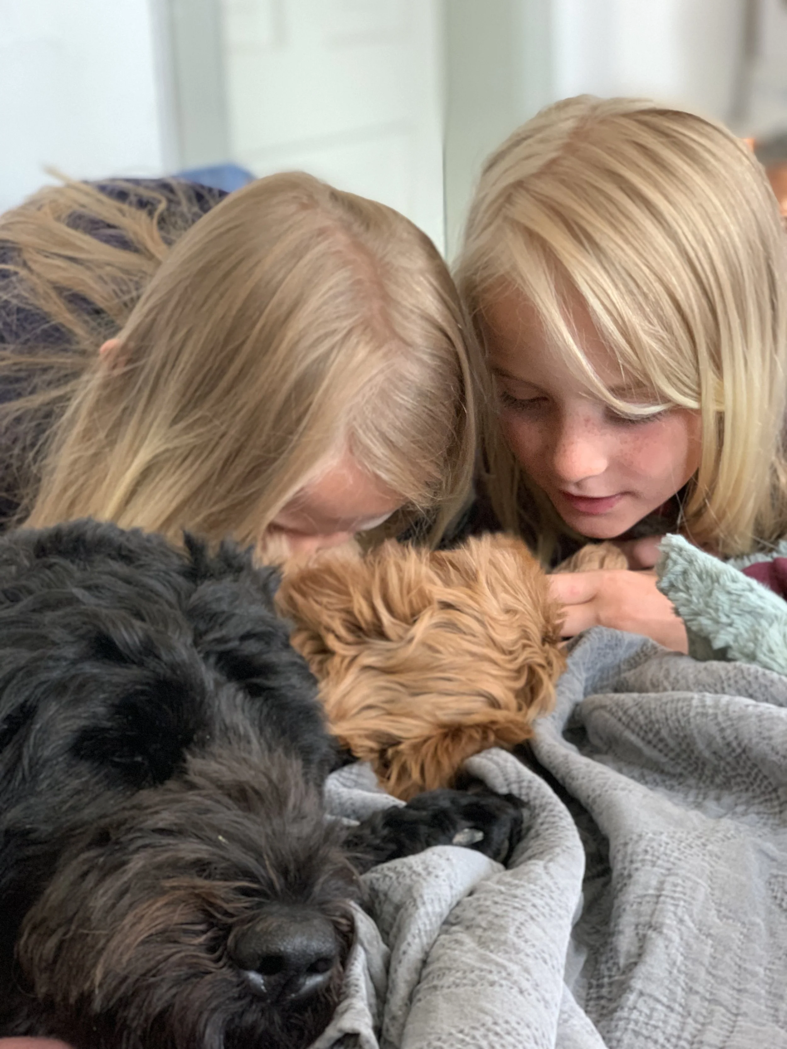 Vi er tre tobente og (foreløpig) to firbente i vår familie. Molly og Nova er tvillingjenter på 9 år og Nelly en nydelig australsk labradoodle, som kom til oss 28 jan 2018. Vi er totalt forelsket!